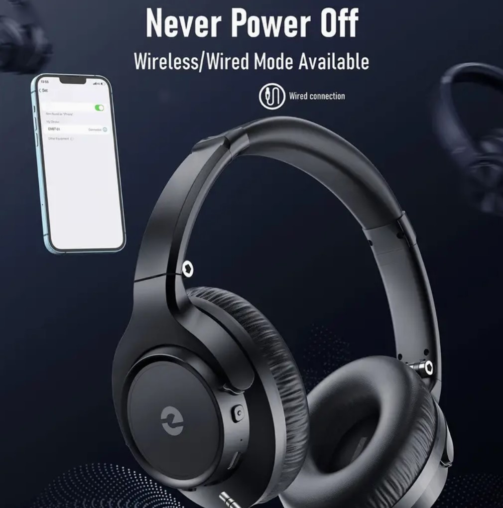 50-Hour Playtime Wireless Hi-Fi Stereo Headphones – Deep Bass, Foldable, Lightweight, Rechargeable Lithium-Polymer Battery, Microphone, and Comfortable Over-Ear Design